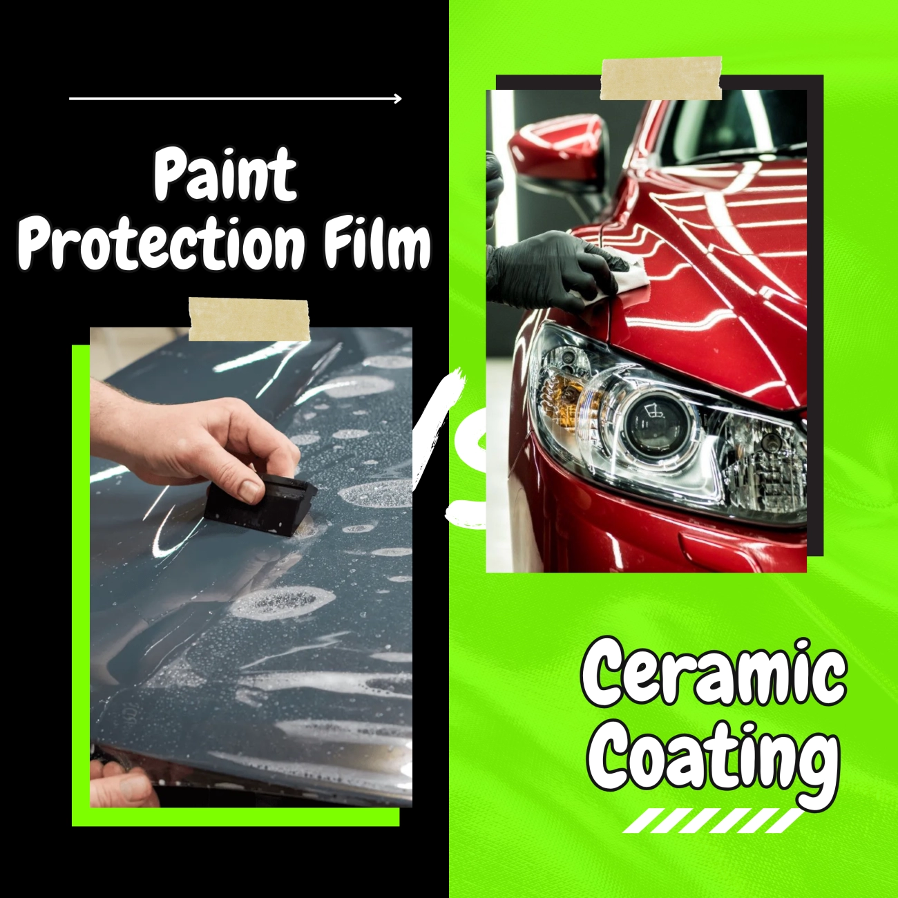 - Vinylfolie – hauptsächlich verwendet, um Farbe oder Finish zu ändern; sie ist dünner und kosmetischer, mit deutlich weniger Aufprallschutz als echtes Lackschutzfilm.