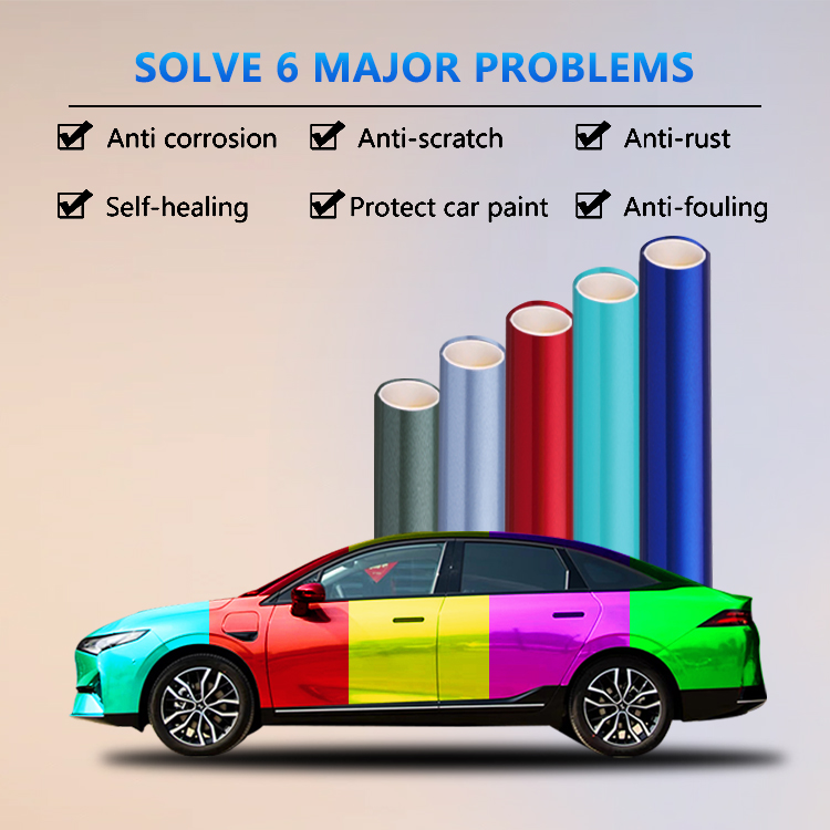 Premium colored PPF film made from wet-application TPU material, featuring color-changing aesthetics, anti-scratch protection, and a 5-year warranty. Designed for full car body protection, ideal for professional installers, wholesalers, and OEM customization projects.